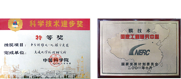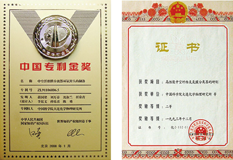●中空纖維系列超濾膜、微孔濾膜及組件的研制-----中科院科技進步二等獎