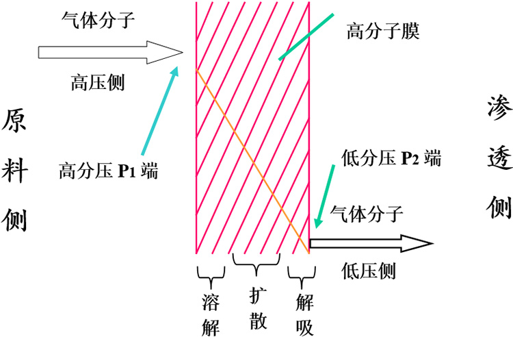 圖1  氣體分離膜原理—溶解擴(kuò)散機(jī)理
