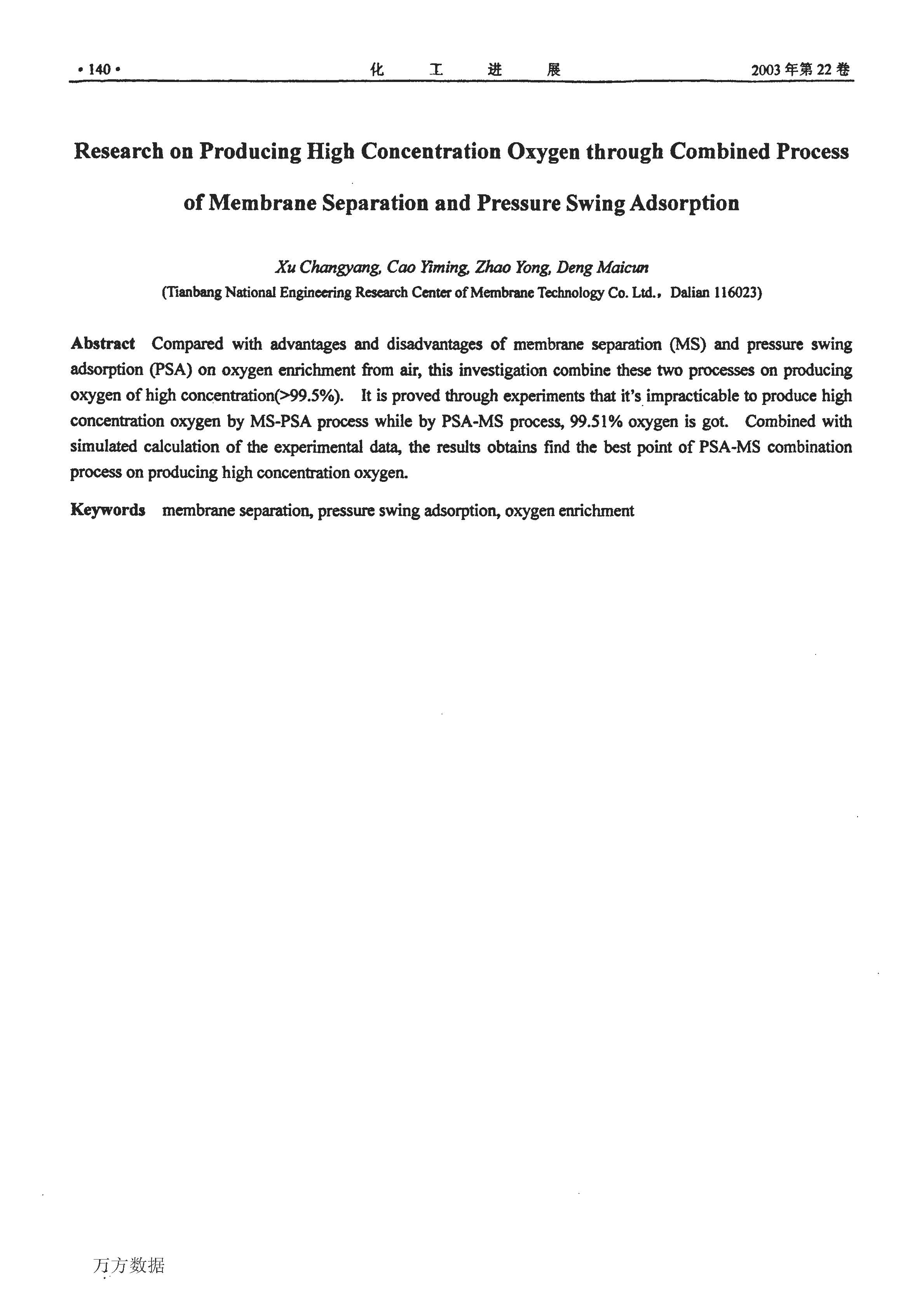 膜分離技術(shù)與變壓吸附技術(shù)結(jié)合制取高濃度氧的研究