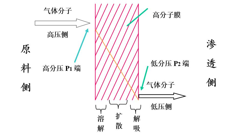 圖1  氣體分離膜原理—溶解擴散機理