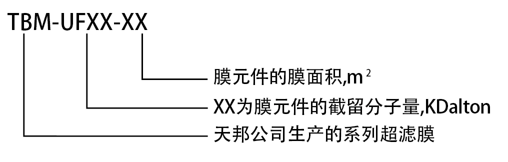 TBM超濾膜元件型號說明: